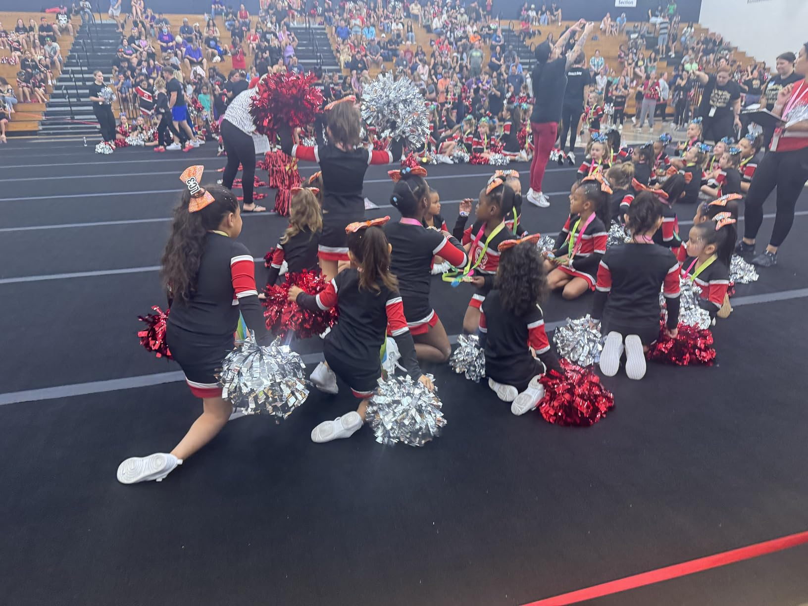 3-12Y Cheerleader Dress (With Hand Flower) Printed Letter T-Shirt Football Game Festival Cosplay Clothing Blue Red Skirt