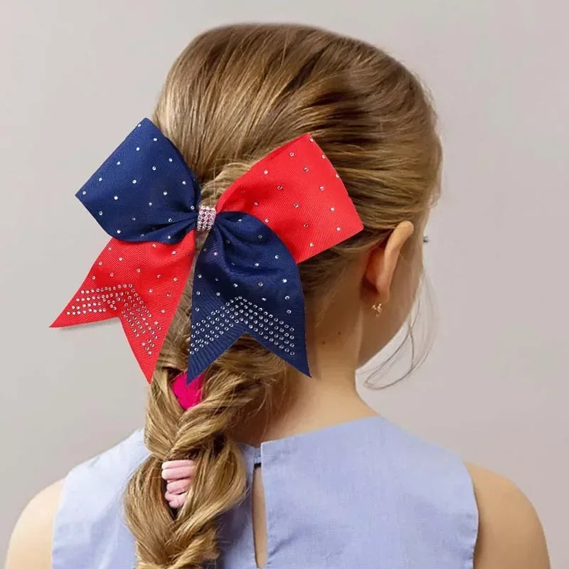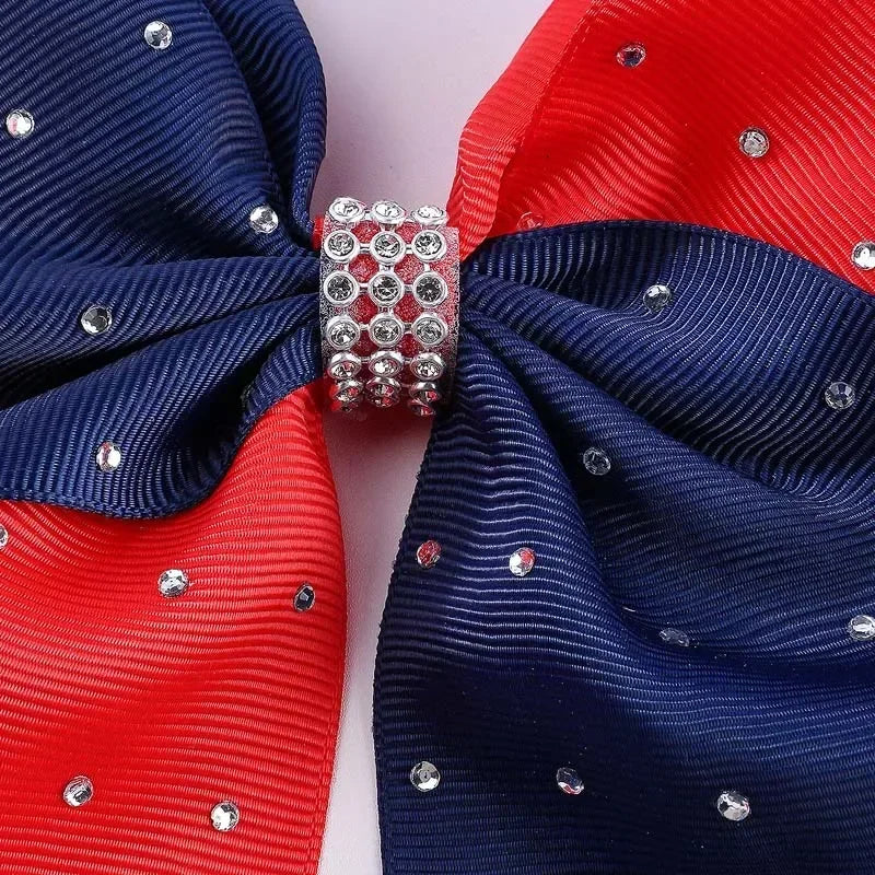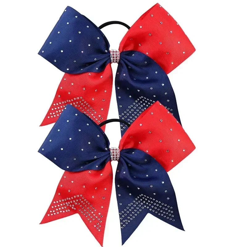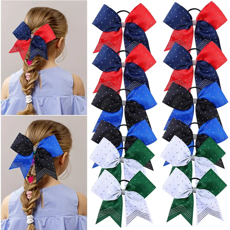 DRX Cheer( 6 pair) set New 8" Cheer Bow For Women Girls Grosgrain Ribbon Hair Rope Hair Ties Elastic Rubber Band Girl Pigtail Holder