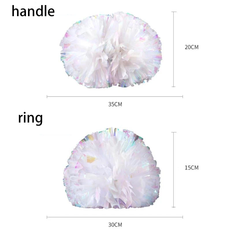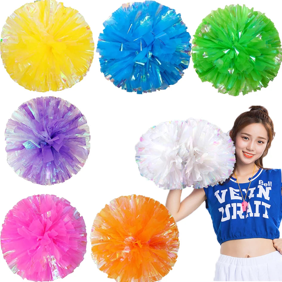 (6Pair) Plastic Handle Metallic Streamer Pompoms Cheerleading Cheering Pom Pom Ball Cheering Dance Decorator Club Sport Supply