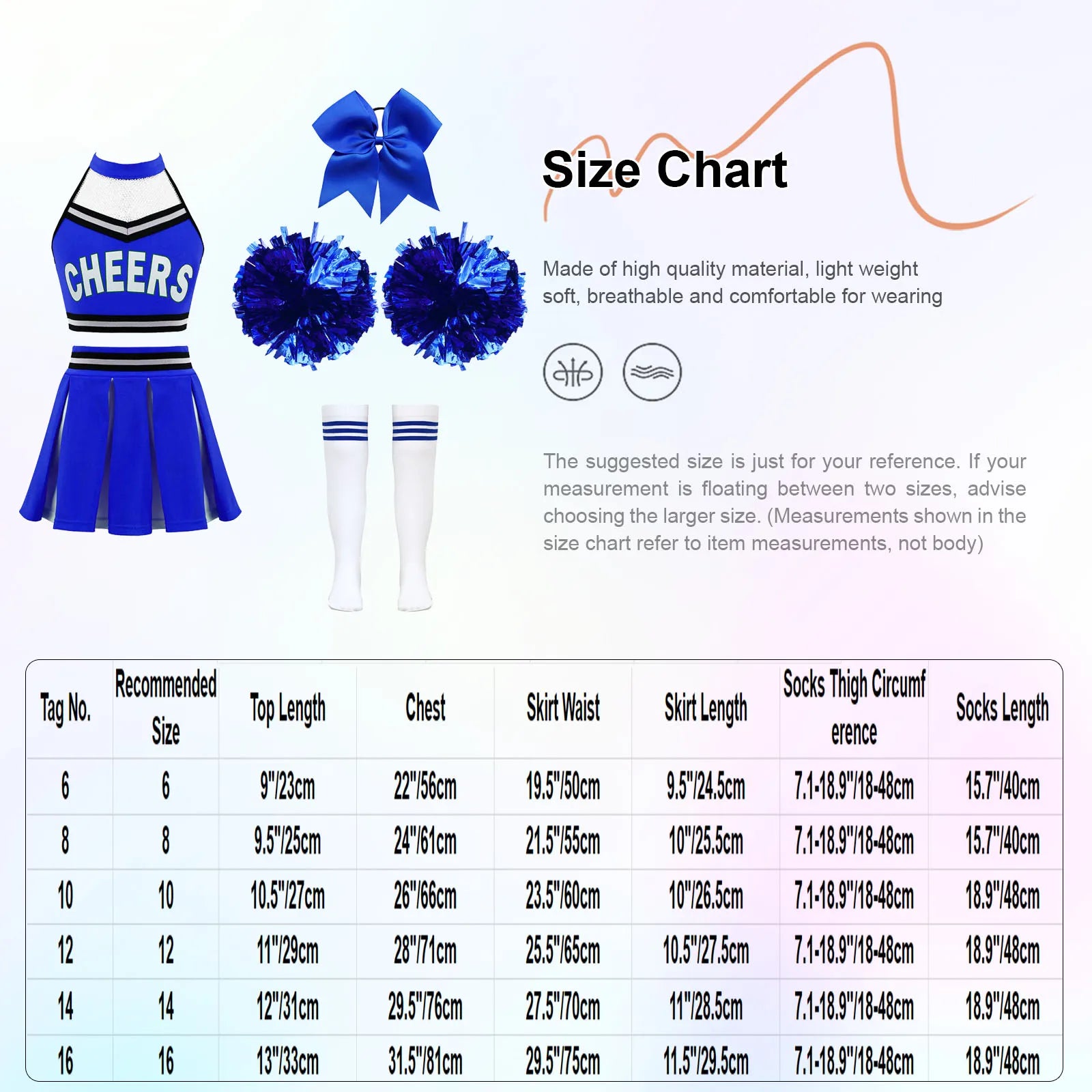 | Tag No. | Recommended Size | Top Length | Chest | Skirt Waist | Skirt Length |